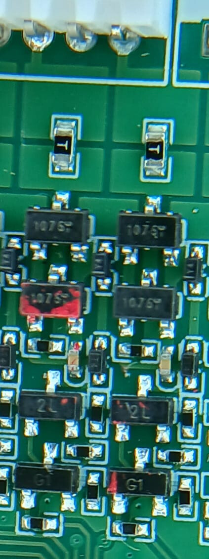 Still trying to find a reference for that 107 [S5]? transistor to see if I can replace them. From the layout, it must be a N-channel MOSFET, but the closest SMD marking I can find is a dual BJT.