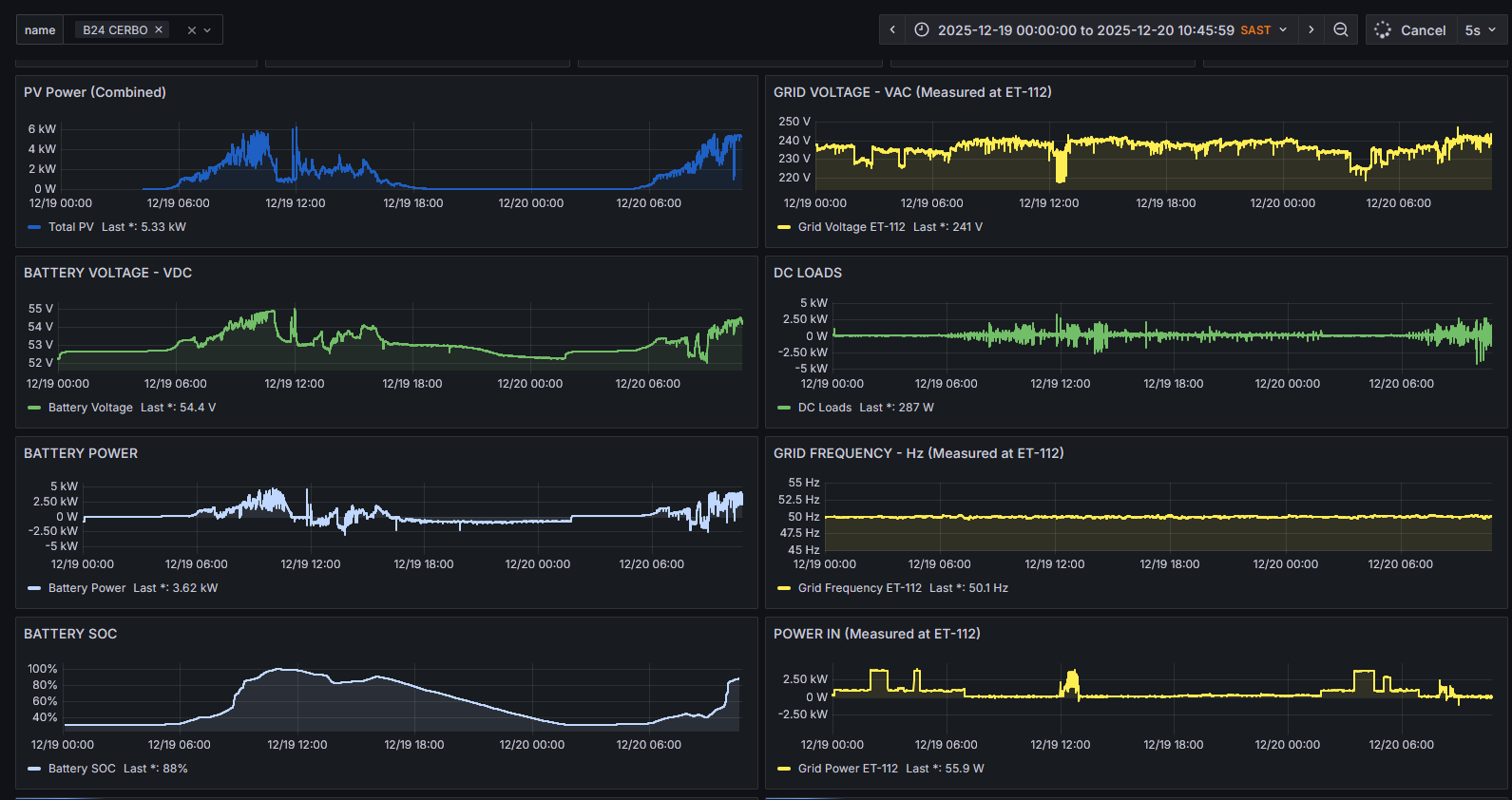Now here’s the real kicker. 3 Days ago the 2x 5KVA MPIIs were replaced with a 10kva Quattro. Absolutely zero frequency shifts thus far. I do realise it is way to early to tell, but sofar it’s promising.
